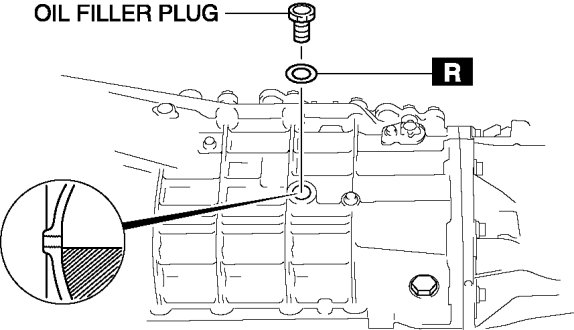 4. Install the oil filler plug and a new washer.