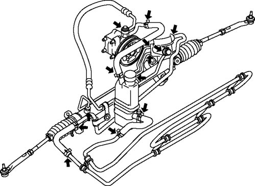 - If the steering wheel is kept in the fully turned position for more than 5 seconds, the fluid temperature will rise excessively and adversely affect the oil pump.
