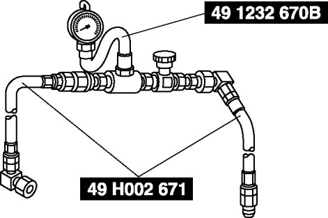 9. Turn the steering wheel fully to the left and right, then measure the fluid pressure generated at the gear housing.