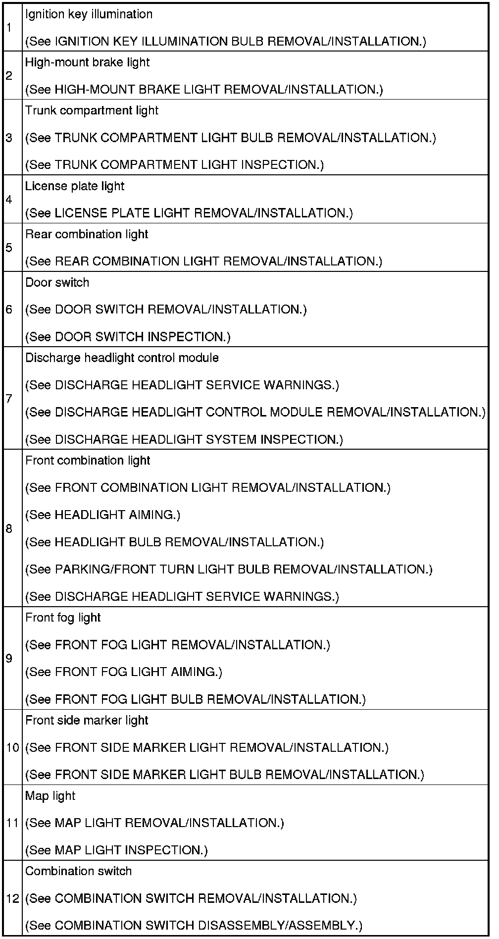 LIGHTING SYSTEMS LOCATION INDEX