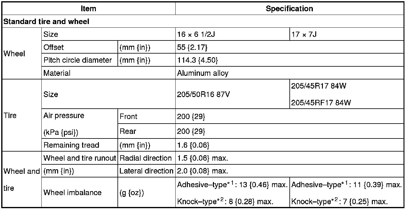 One balance weight: 60 g {2.12 oz} max. If the total weight exceeds 100 g {3.53 oz} on one side, rebalance after moving the tire around on the rim. Do not use three or more balance weights.