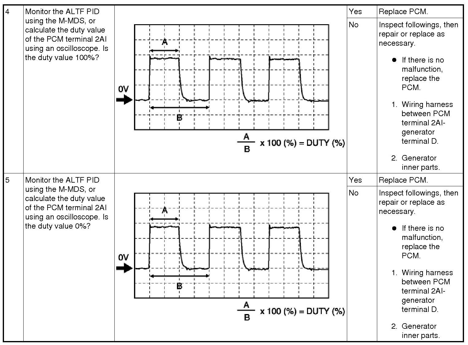 1 If the generator warning light and the wiring harness are normal, inspect the PCM.