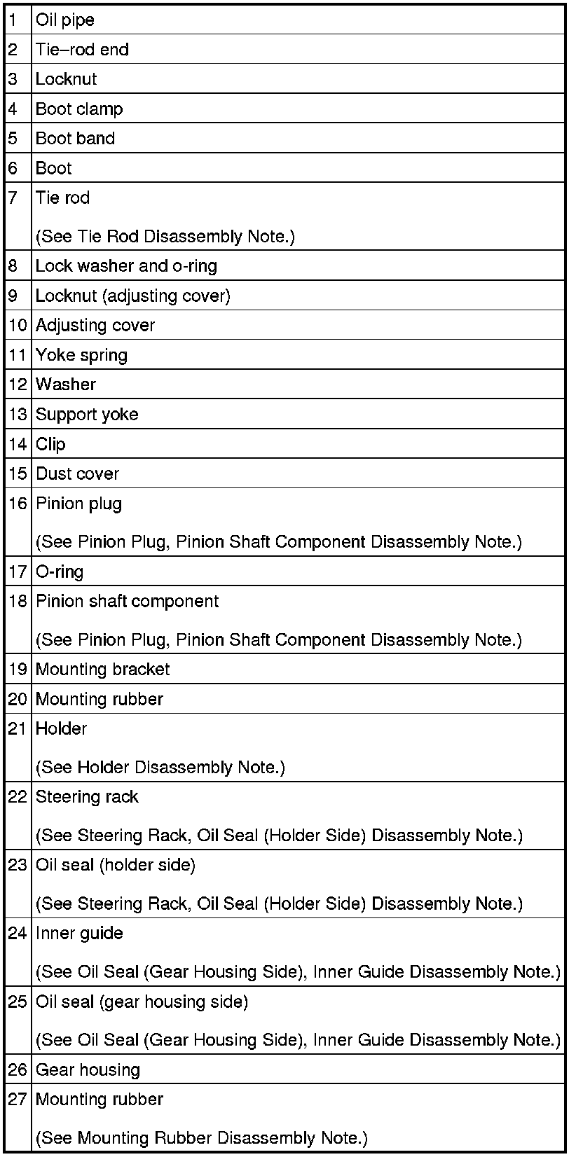 Tie Rod Disassembly Note