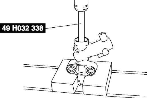 - Press the mounting rubber out from the gear housing using the SSTs and a press.