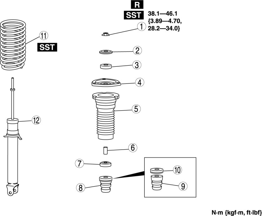 - Before removing the piston rod nut, secure the shock absorber and spring in the SSTs. Otherwise, the shock absorber and spring could fly off under tremendous pressure and cause serious injury or death, or damage to vehicle parts.