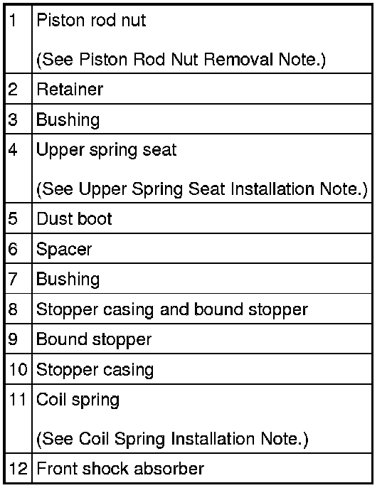 - Removing/installing the shock absorber and coil spring is dangerous. The shock absorber and coil spring could fly off and cause serious injury or death, and damage the vehicle.