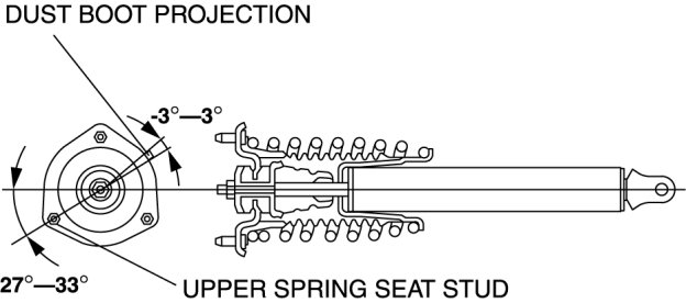 2. Install the upper spring seat so that the upper spring seat stud is at a 27°-33° angle to the shock absorber installation shaft (lower side).