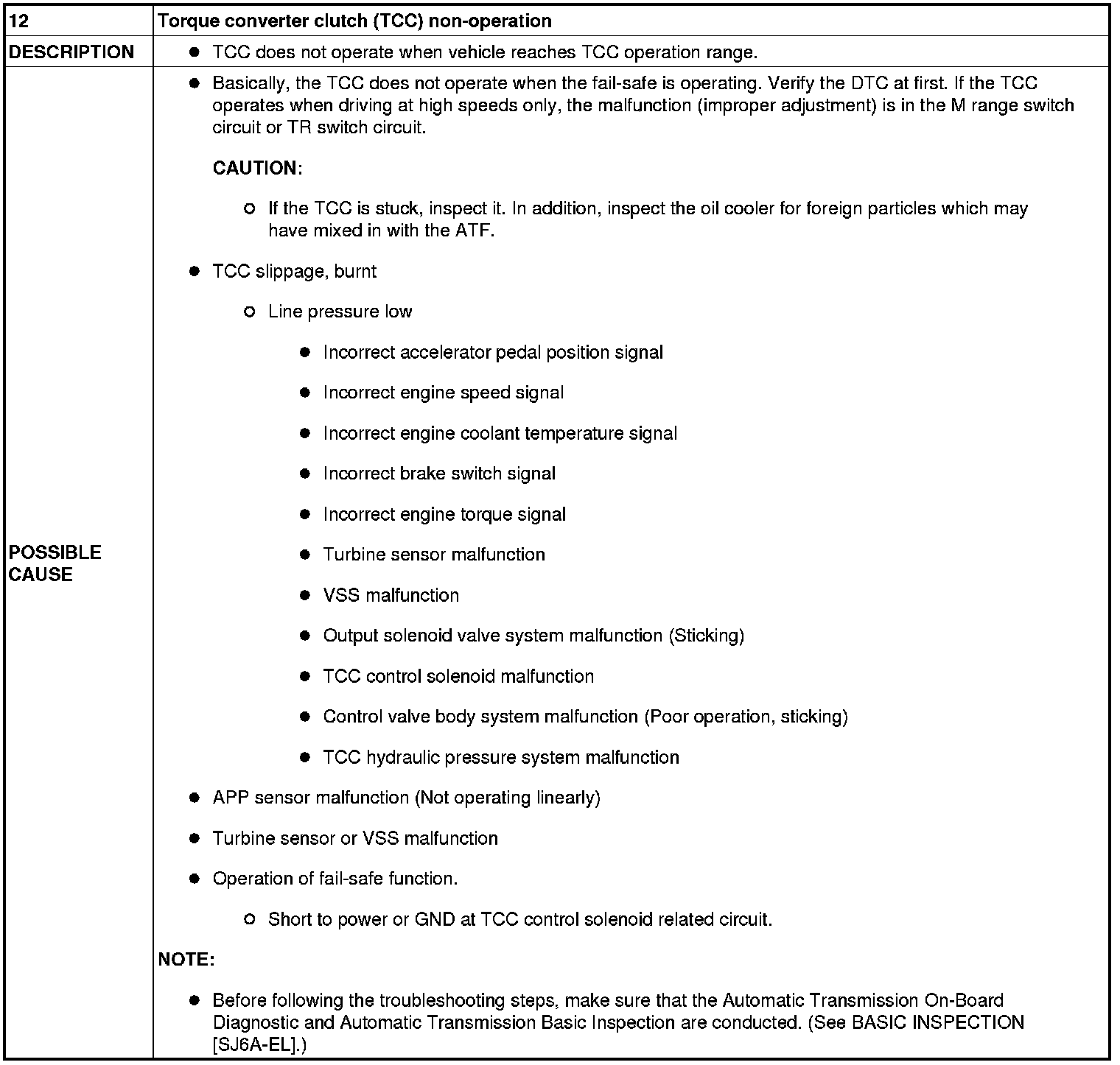 NO.12 TORQUE CONVERTER CLUTCH (TCC) NON-OPERATION [SJ6A-EL]
