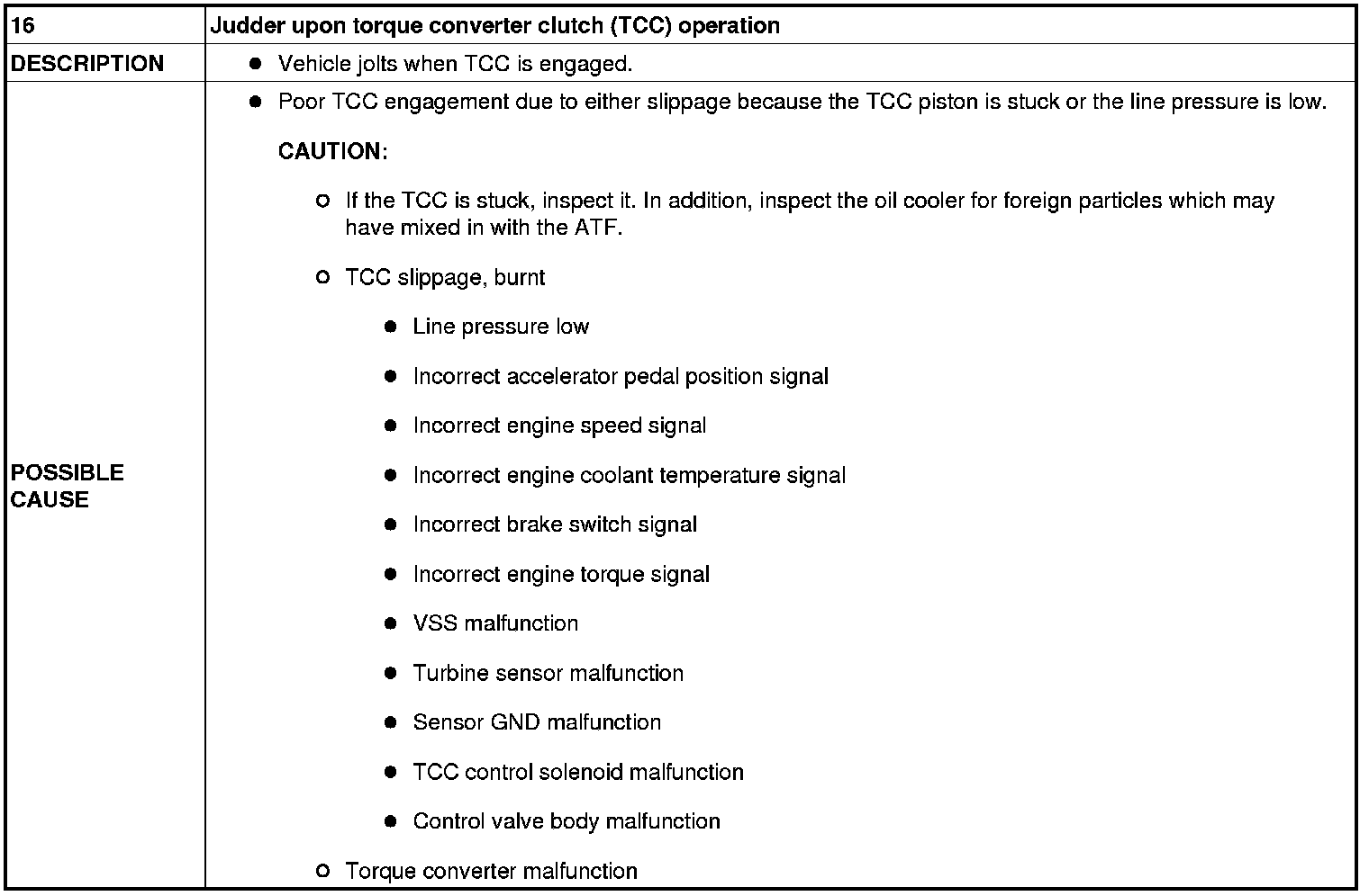 No. 16 Judder Upon Torque Converter Clutch (TCC) Operation