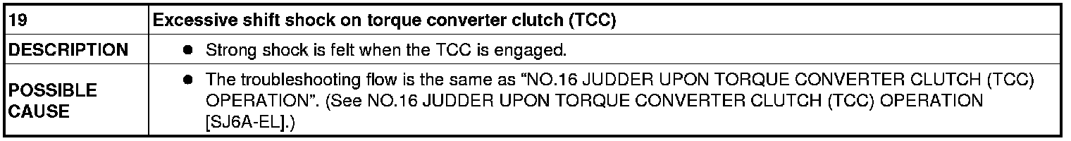 NO.19 EXCESSIVE SHIFT SHOCK ON TORQUE CONVERTER CLUTCH (TCC) [SJ6A-EL]