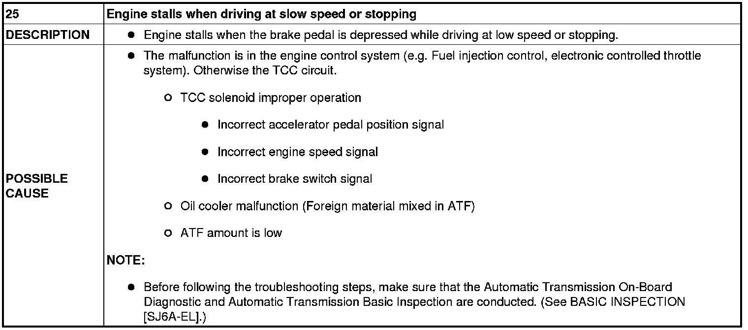NO.25 ENGINE STALLS WHEN DRIVING AT SLOW SPEED OR STOPPING [SJ6A-EL]