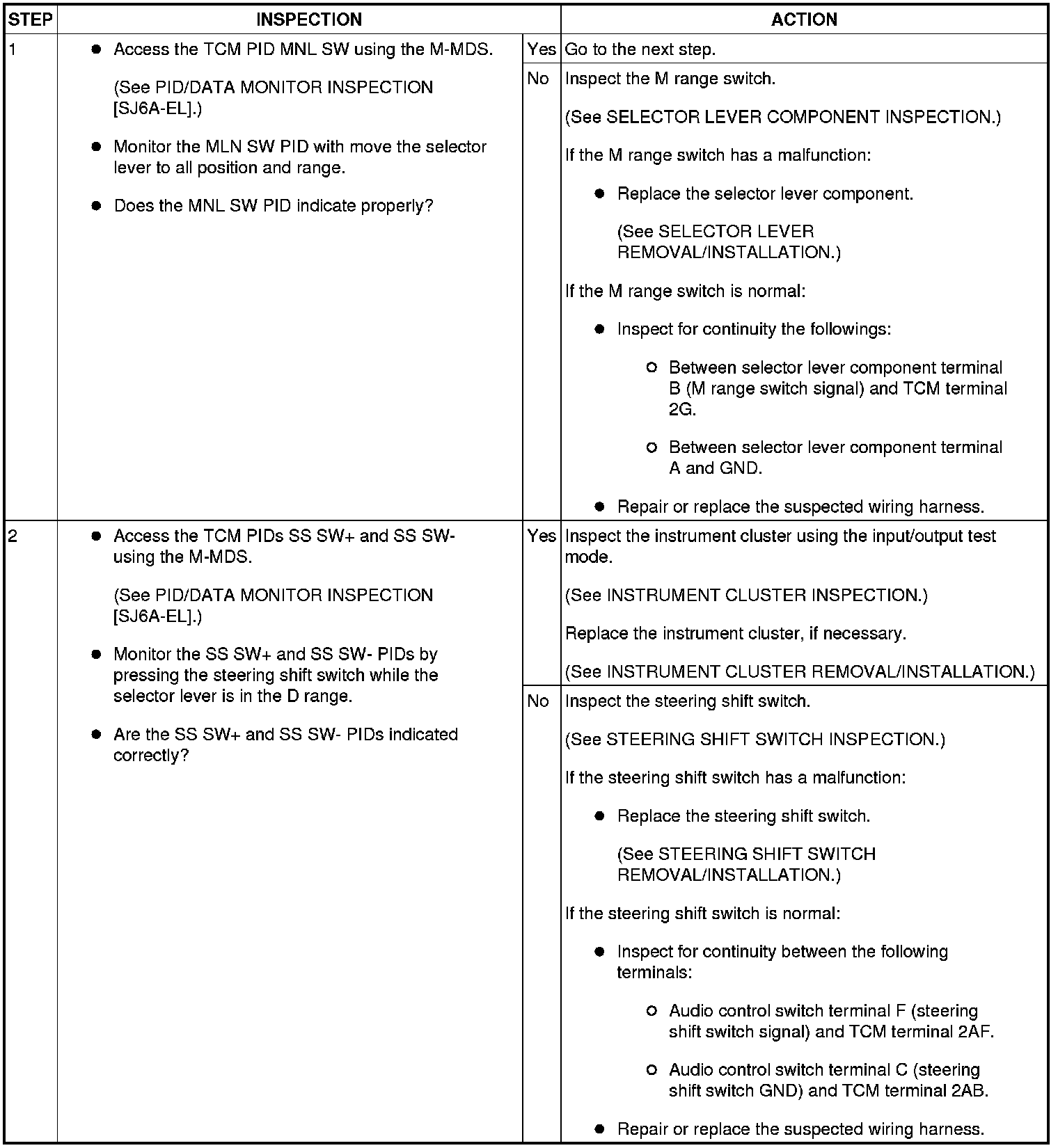 NO.31 M RANGE POSITION INDICATOR LIGHT DOES NOT ILLUMINATE IN M RANGE AND/OR IN D RANGE WITH DIRECT MODE/M RANGE POSITION INDICATOR LIGHT ILLUMINATES IN D RANGE WHILE NOT IN DIRECT MODE [SJ6A-EL]