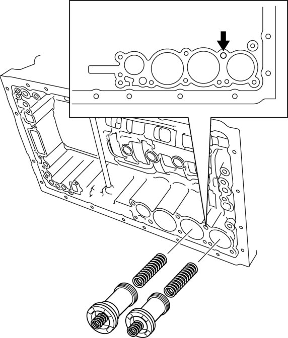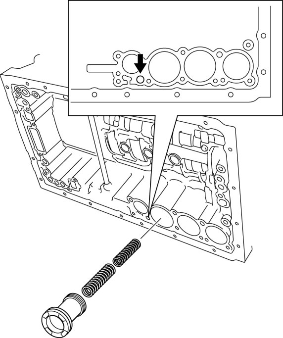 22. Apply compressed air into the oil passage as shown in the figure and remove the accumulator piston (C-3) and compression springs from the transmission case.