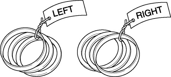 2. Put left and right identification marks on the removed adjustment shims and side bearing outer races.