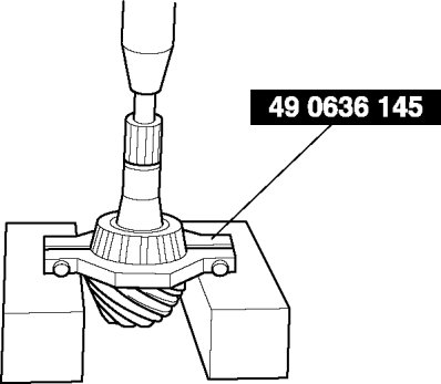 - The drive pinion could be damaged if it falls off. Support the drive pinion with your hand when removing the rear bearing.