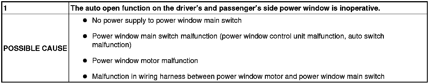 No.1 THE AUTO OPEN FUNCTION ON THE DRIVER'S AND PASSENGER'S SIDE POWER WINDOW IS INOPERATIVE [POWER WINDOW SYSTEM]