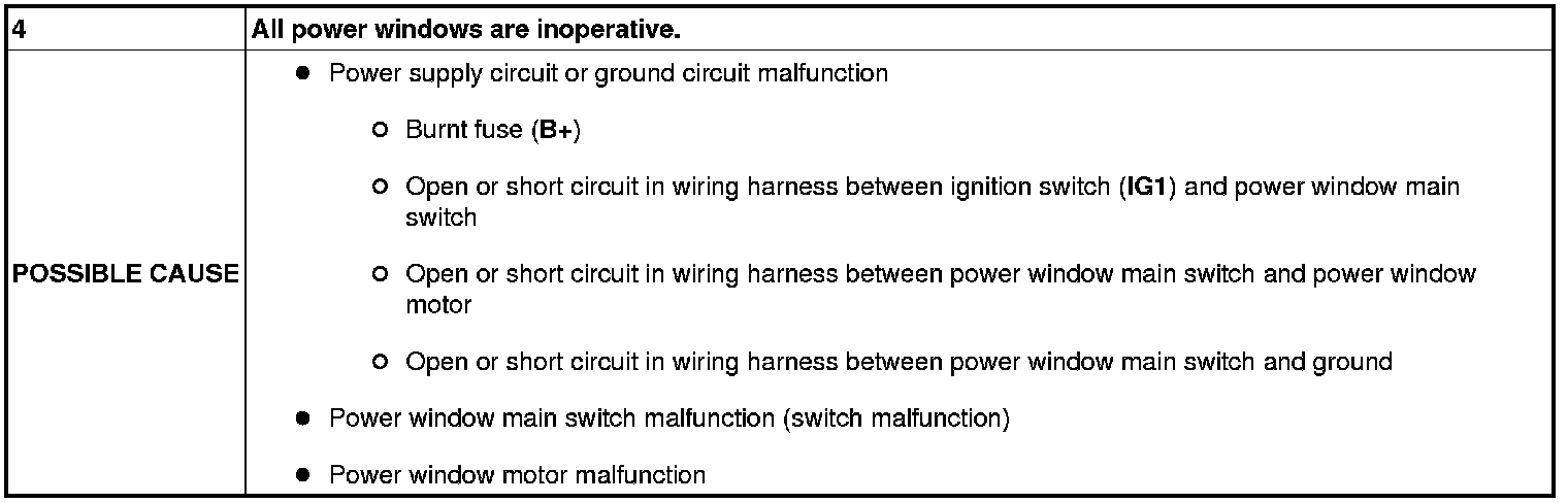 No.4 ALL POWER WINDOWS ARE INOPERATIVE [POWER WINDOW SYSTEM]