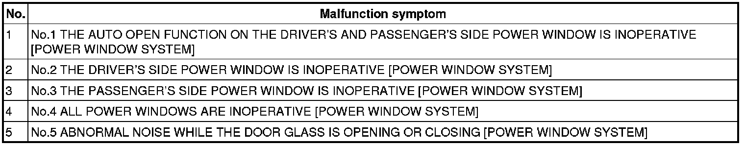 SYMPTOM TROUBLESHOOTING CHART [POWER WINDOW SYSTEM]