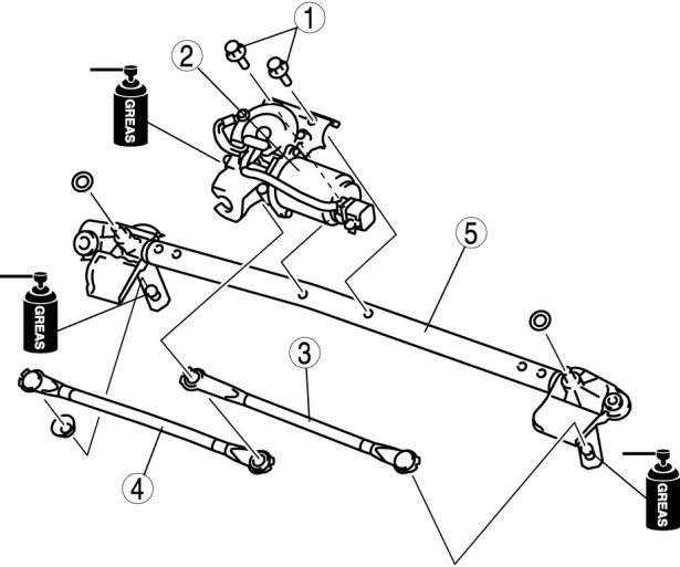 2. Adjust the motor crank, wiper link No.1, and wiper link No.2 so that they are parallel as shown in the figure.