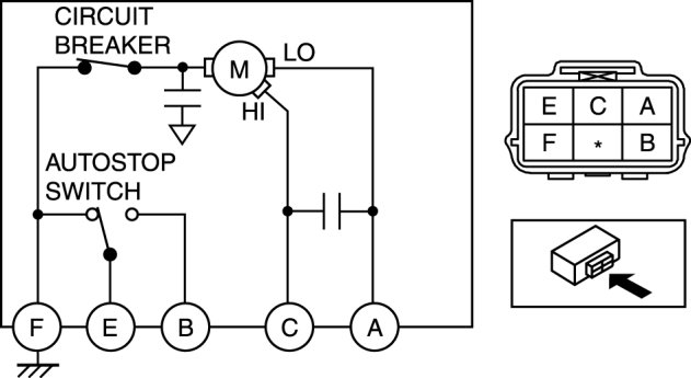 4. Connect wiper motor terminals E and A, and apply battery positive voltage to terminal B.