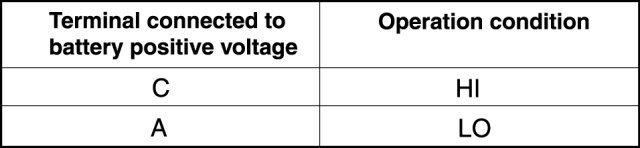 3. Operate the wipers, disconnect battery positive voltage from terminal A or C, and then verify that the wipers stop.