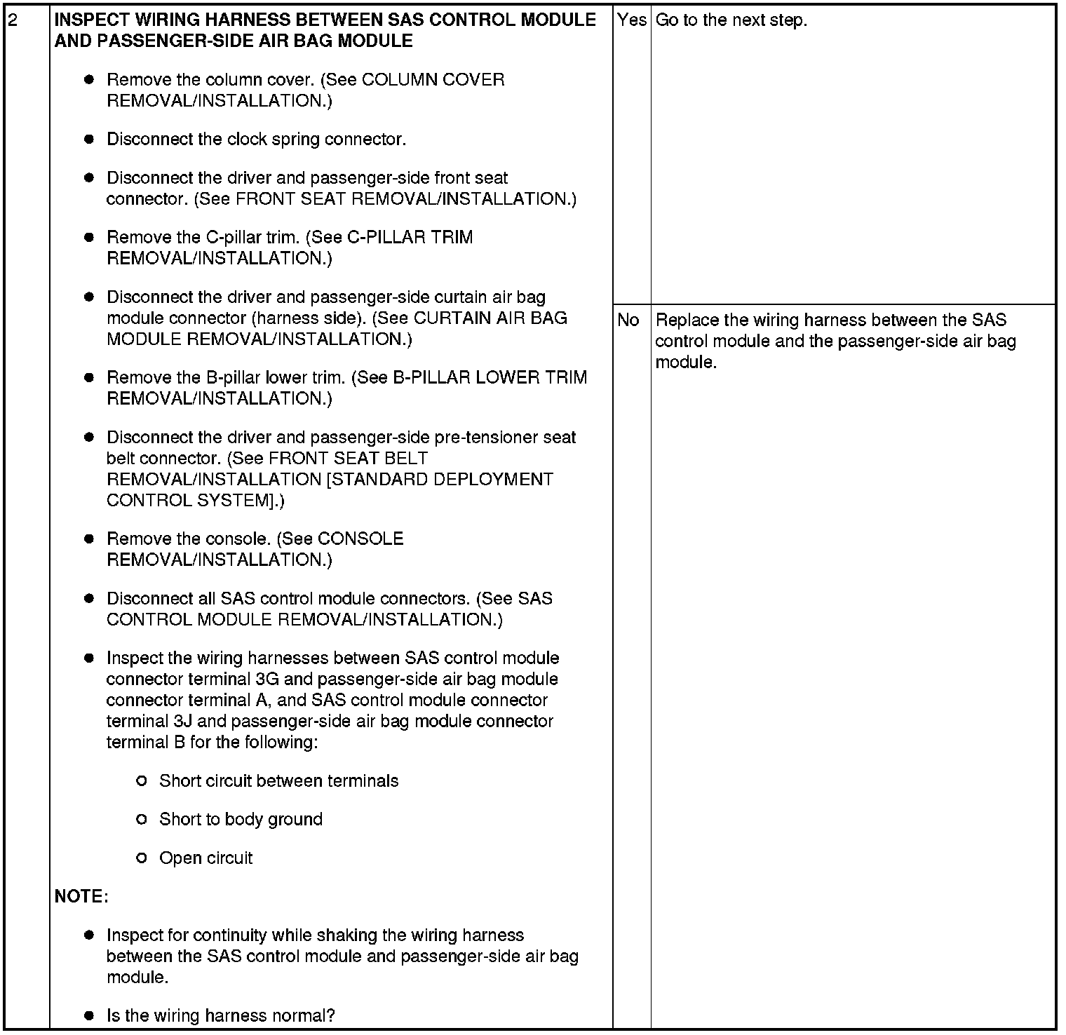 - Malfunction in the wiring harness between the passenger-side air bag module and SAS control module