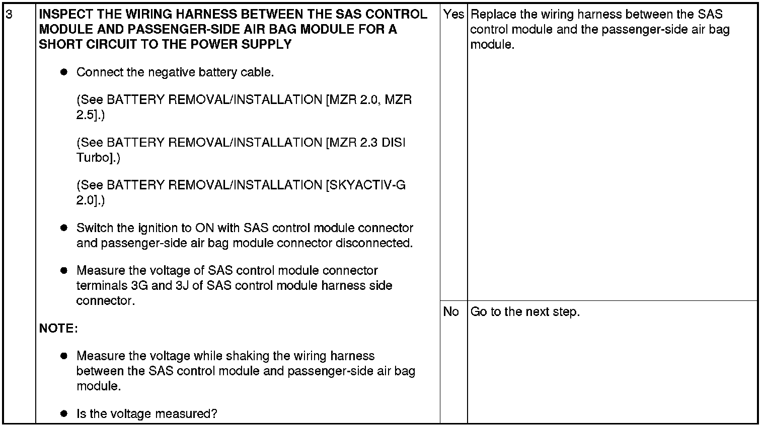 - Malfunction in the wiring harness between the passenger-side air bag module (inflator No.1) and SAS control module