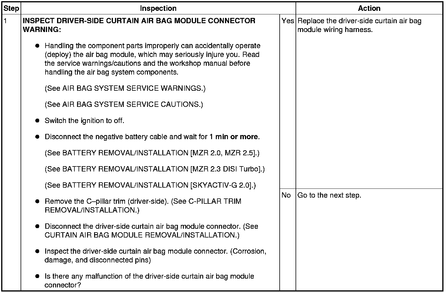 - Driver-side curtain air bag module connector malfunction