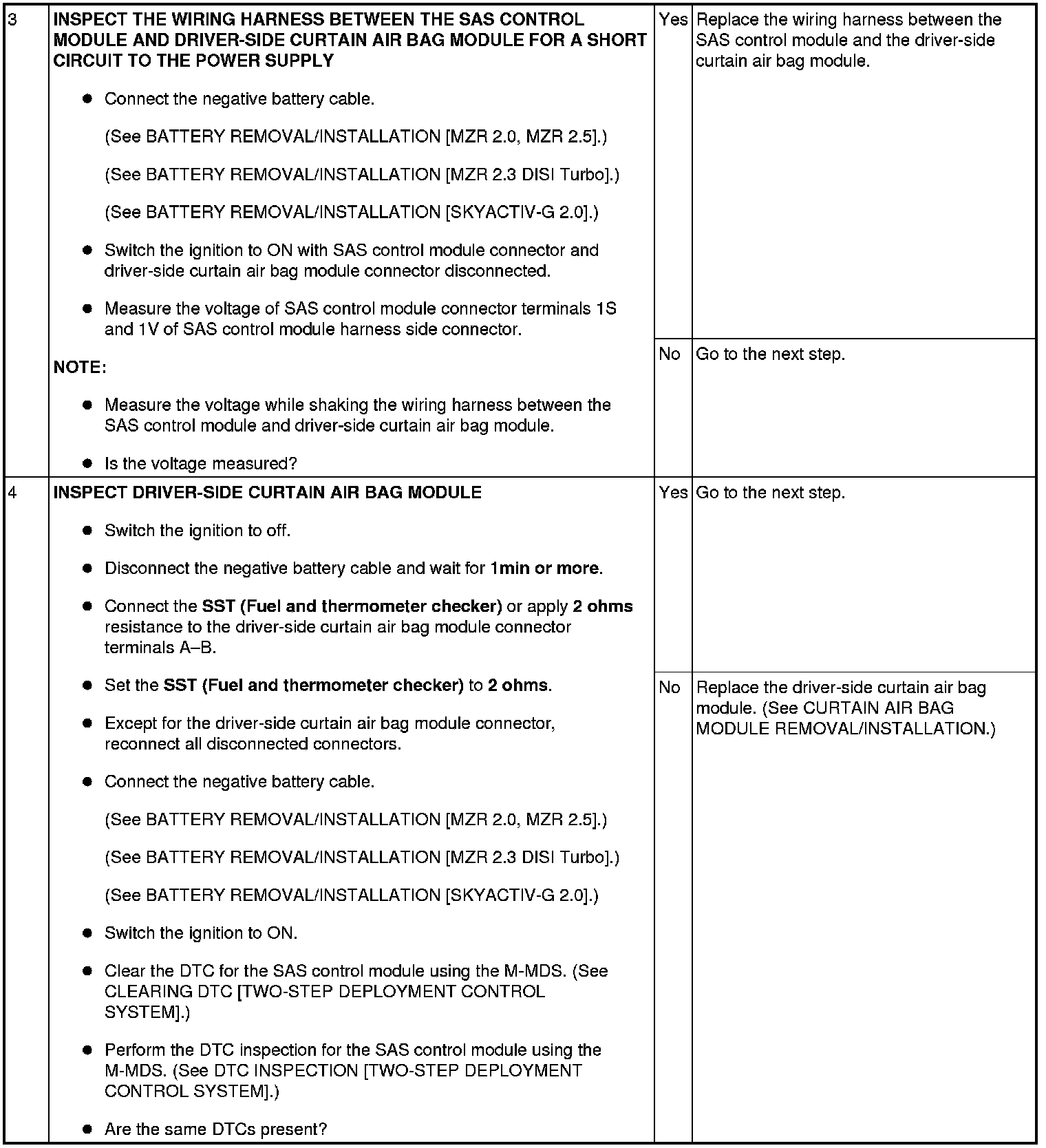- Wiring harness between the driver-side curtain air bag module and SAS control module has a malfunction