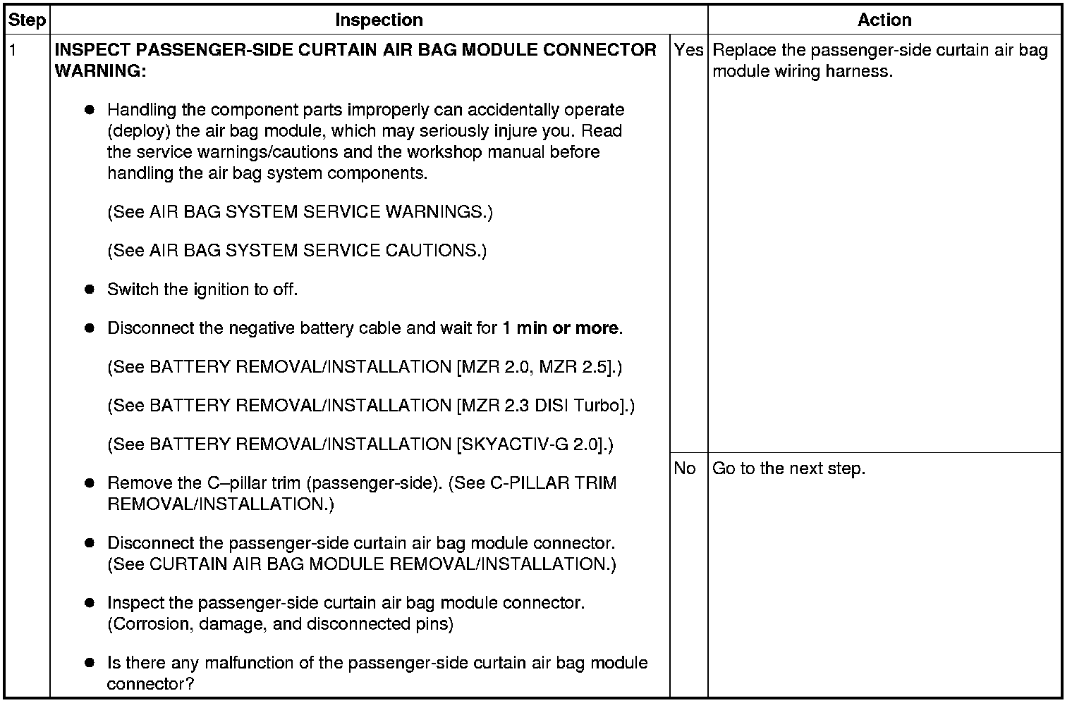 - Wiring harness between the passenger-side curtain air bag module and SAS control module has a malfunction