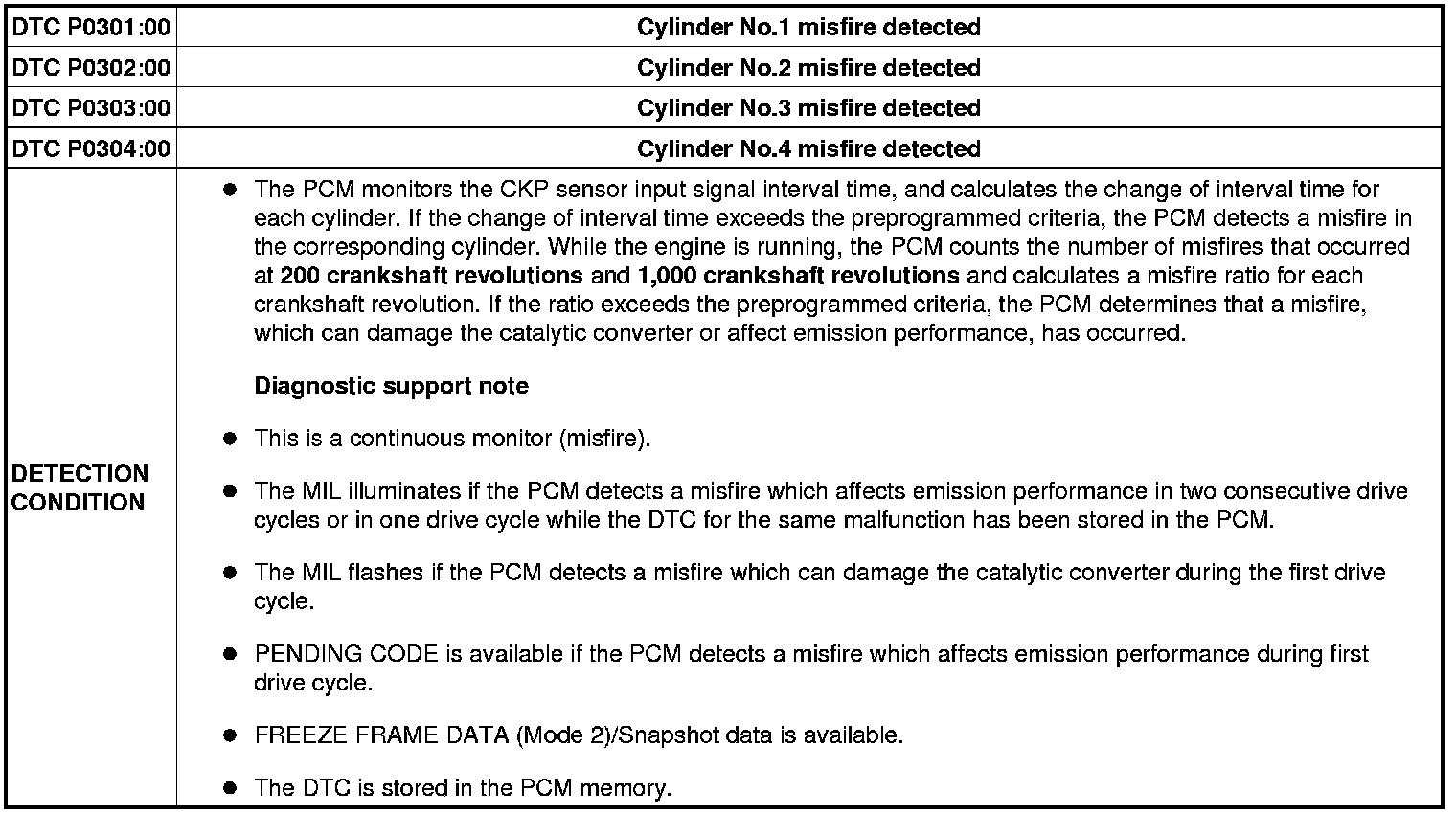 DTC P0301:00, P0302:00, P0303:00, P0304:00 [MZR 2.3 DISI Turbo]