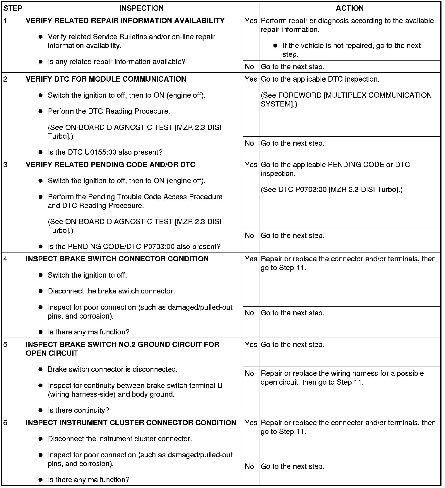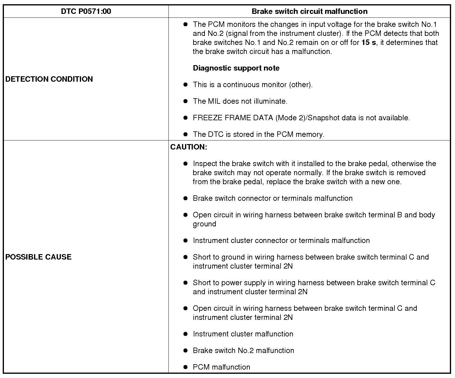 DTC P0571:00 [MZR 2.3 DISI Turbo]