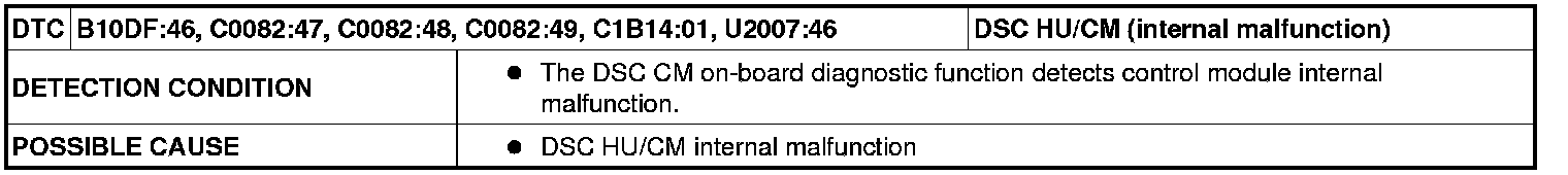 DTC B10DF:46 / C0082:47 / C0082:48 / C0082:49 / C1B14:01 / U2007:46 [DYNAMIC STABILITY CONTROL (DSC)]