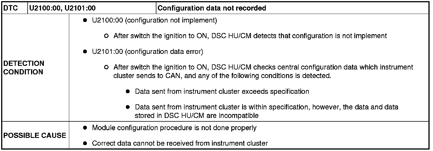 DTC U2100:00 / U2101:00 [DYNAMIC STABILITY CONTROL (DSC)]