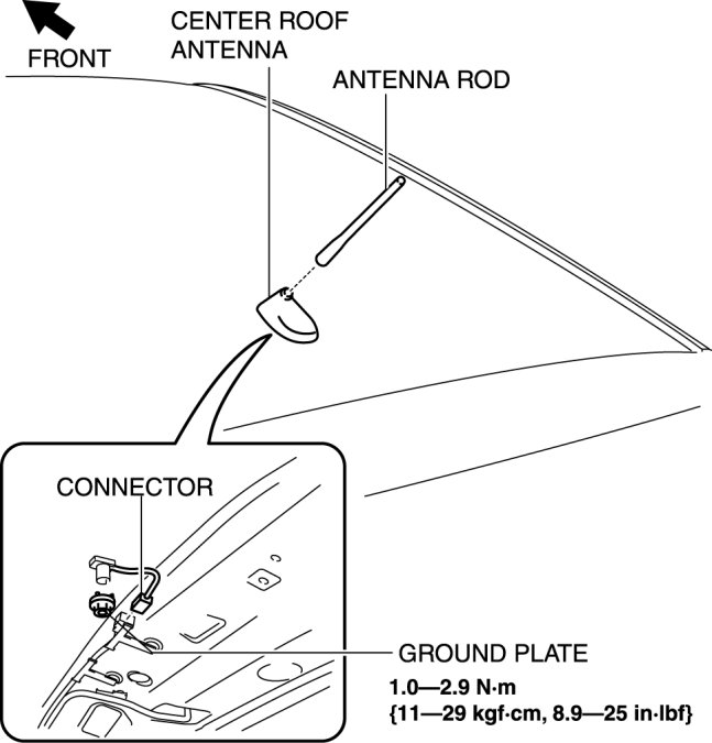 11. After installation, verify that the rubber of the center roof antenna is installed to the roof panel with no space between them.