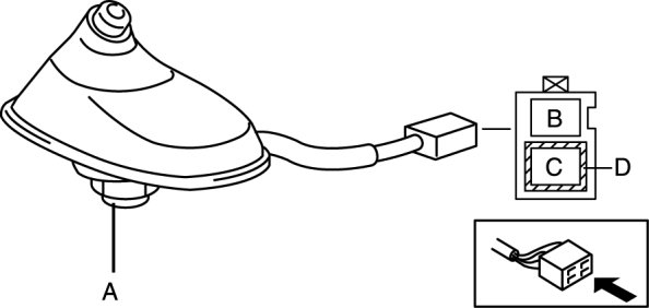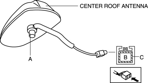 2. Verify that there is no continuity between the center roof antenna terminals A and C using an ohmmeter.