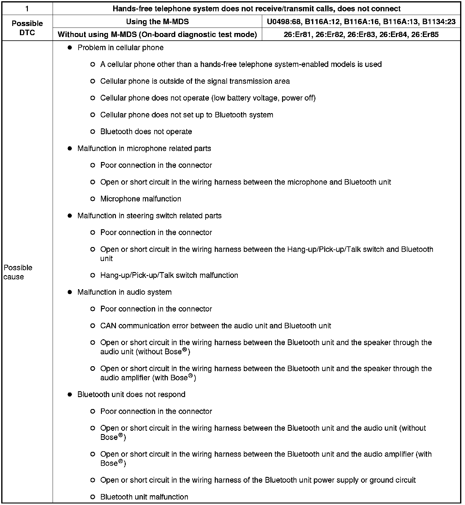 No.1 HANDS-FREE TELEPHONE SYSTEM DOES NOT RECEIVE/TRANSMIT CALLS, DOES NOT CONNECT [Bluetooth SYSTEM (HANDS-FREE TELEPHONE (HF/TEL) SYSTEM)]