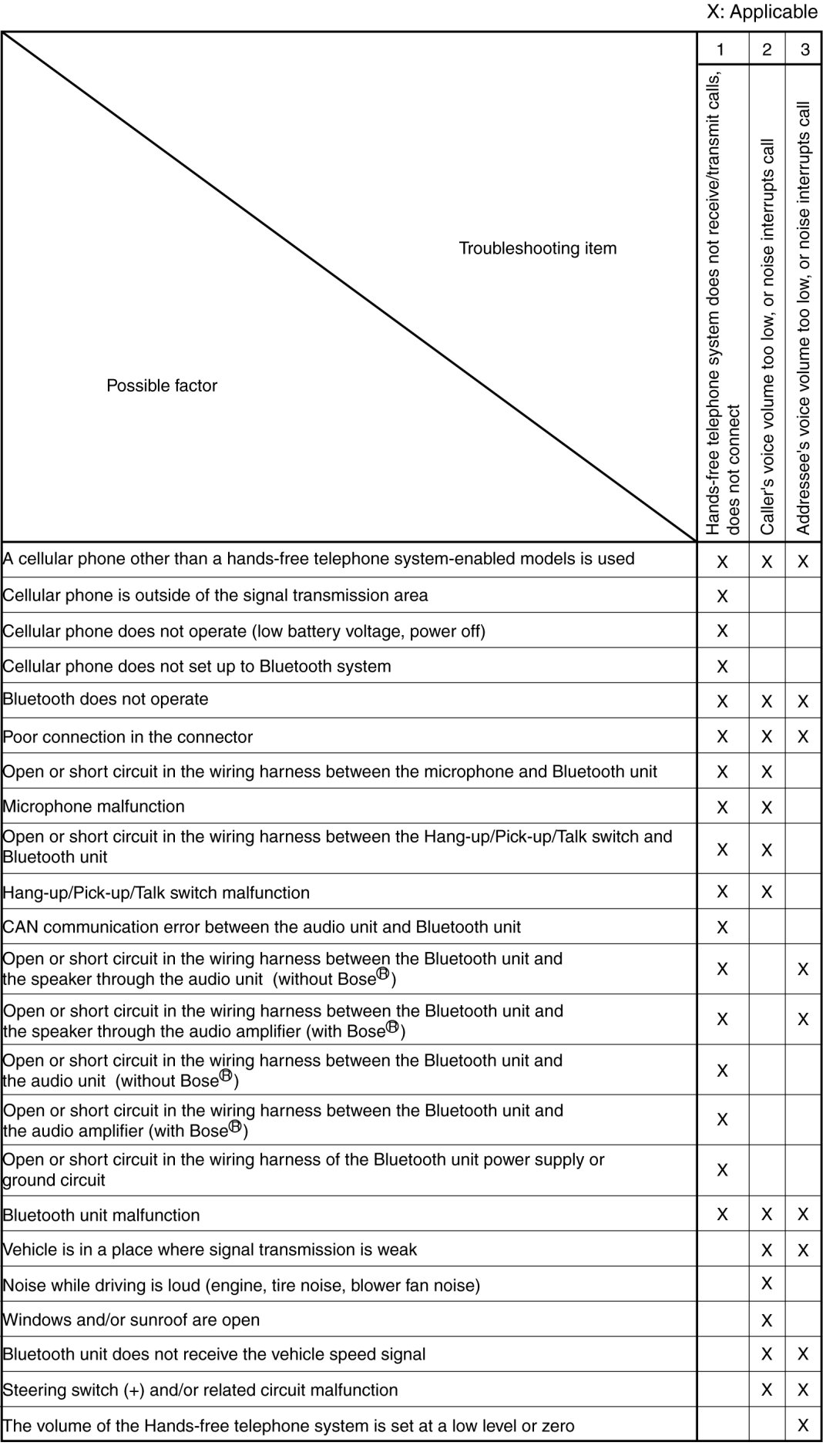 TROUBLESHOOTING INDEX [Bluetooth SYSTEM (HANDS-FREE TELEPHONE (HF/TEL) SYSTEM)]