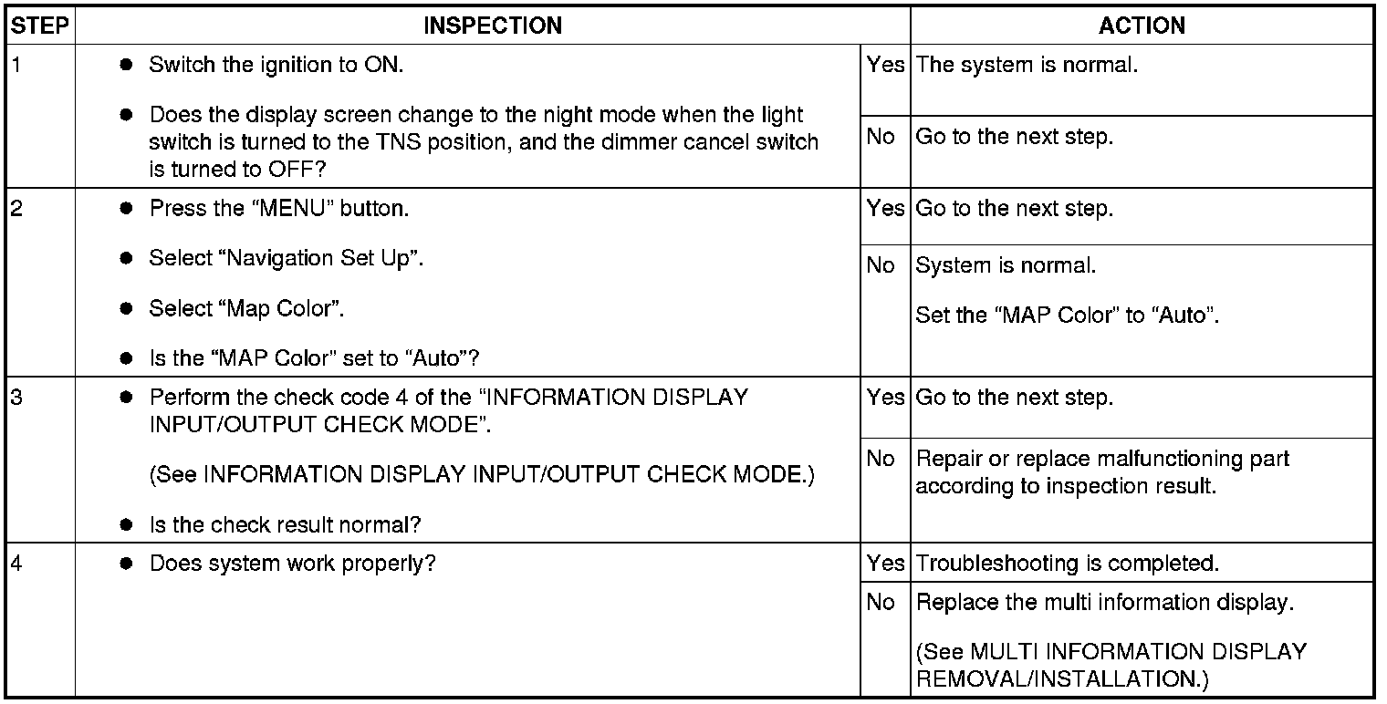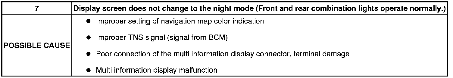 NO.7 DISPLAY SCREEN DOES NOT CHANGE TO THE NIGHT MODE (FRONT AND REAR COMBINATION LIGHTS OPERATE NORMALLY.) [CAR-NAVIGATION SYSTEM (INTEGRATED MULTI INFORMATION DISPLAY)]
