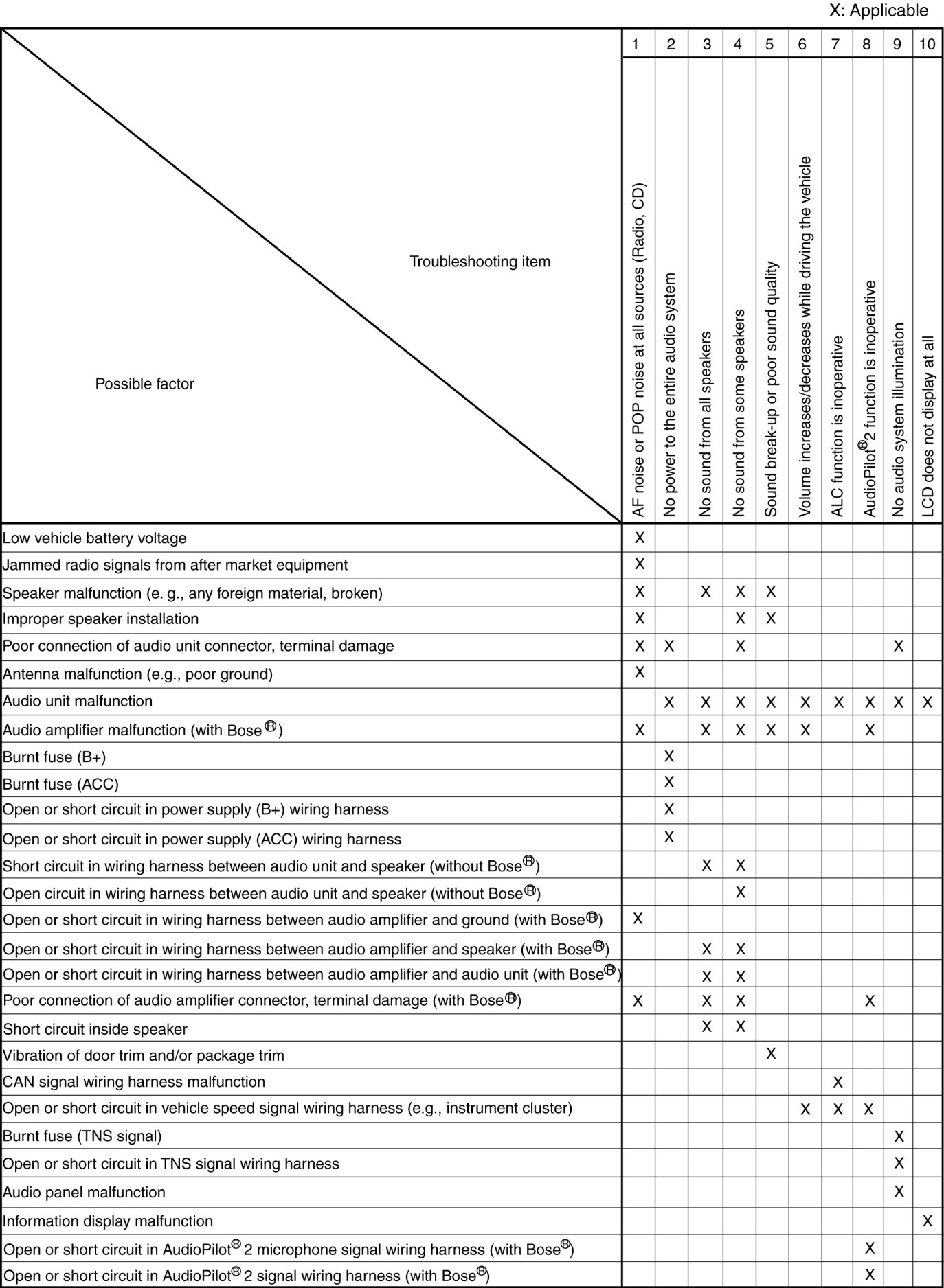 TROUBLESHOOTING INDEX [ENTIRE AUDIO SYSTEM]