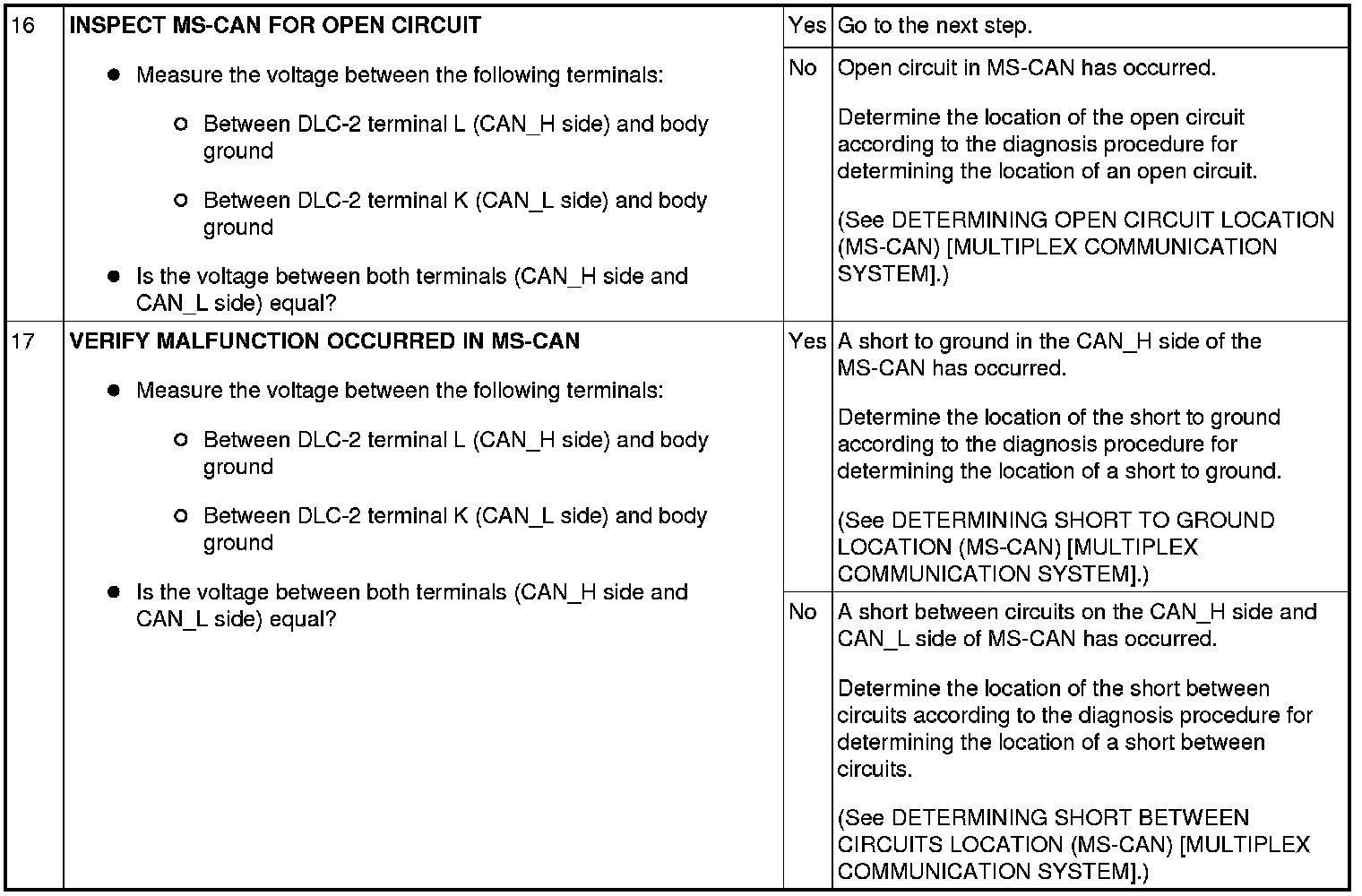 Controller Area Network (CAN) Malfunction Diagnosis Flow [Multiplex Communication System]