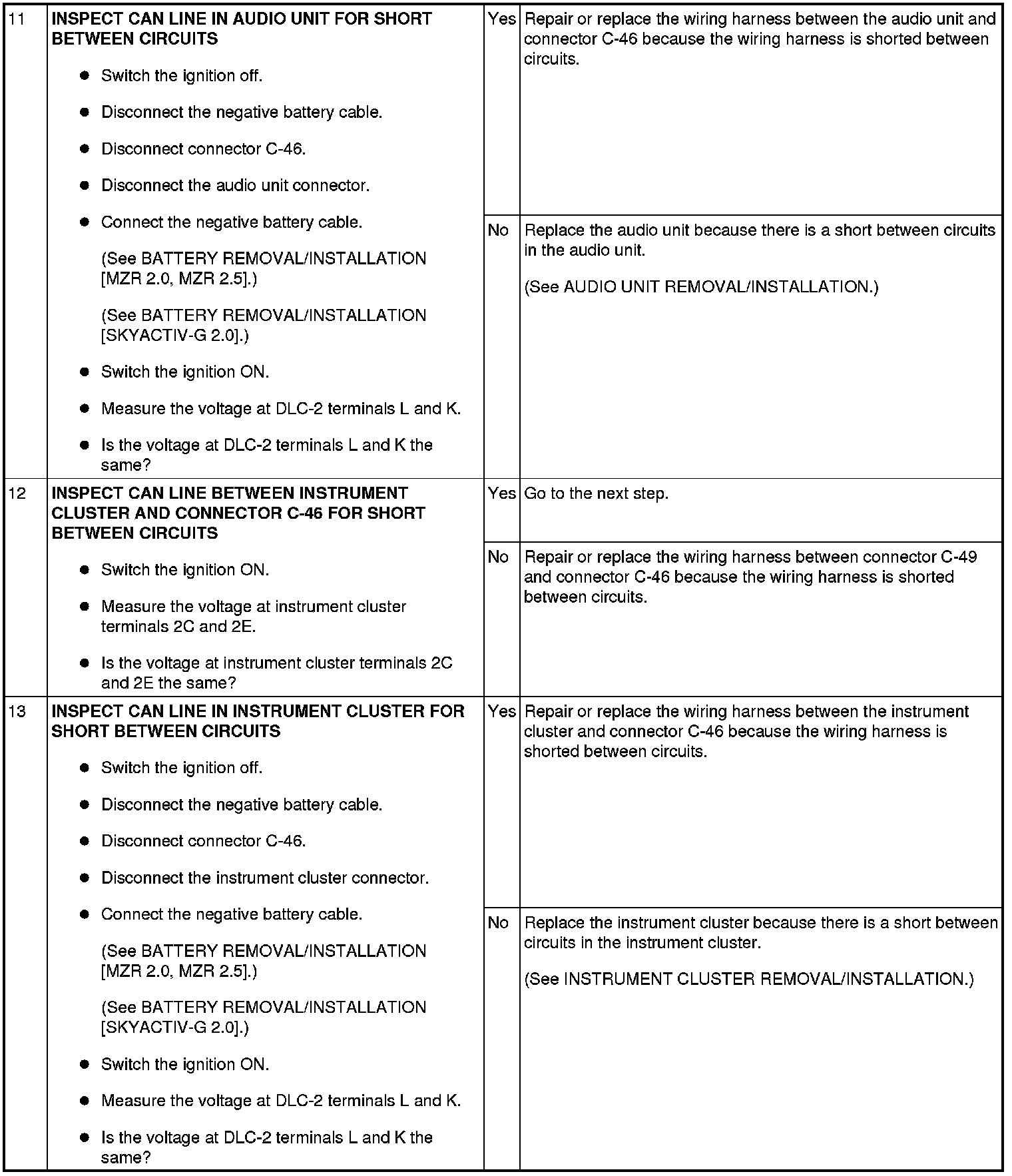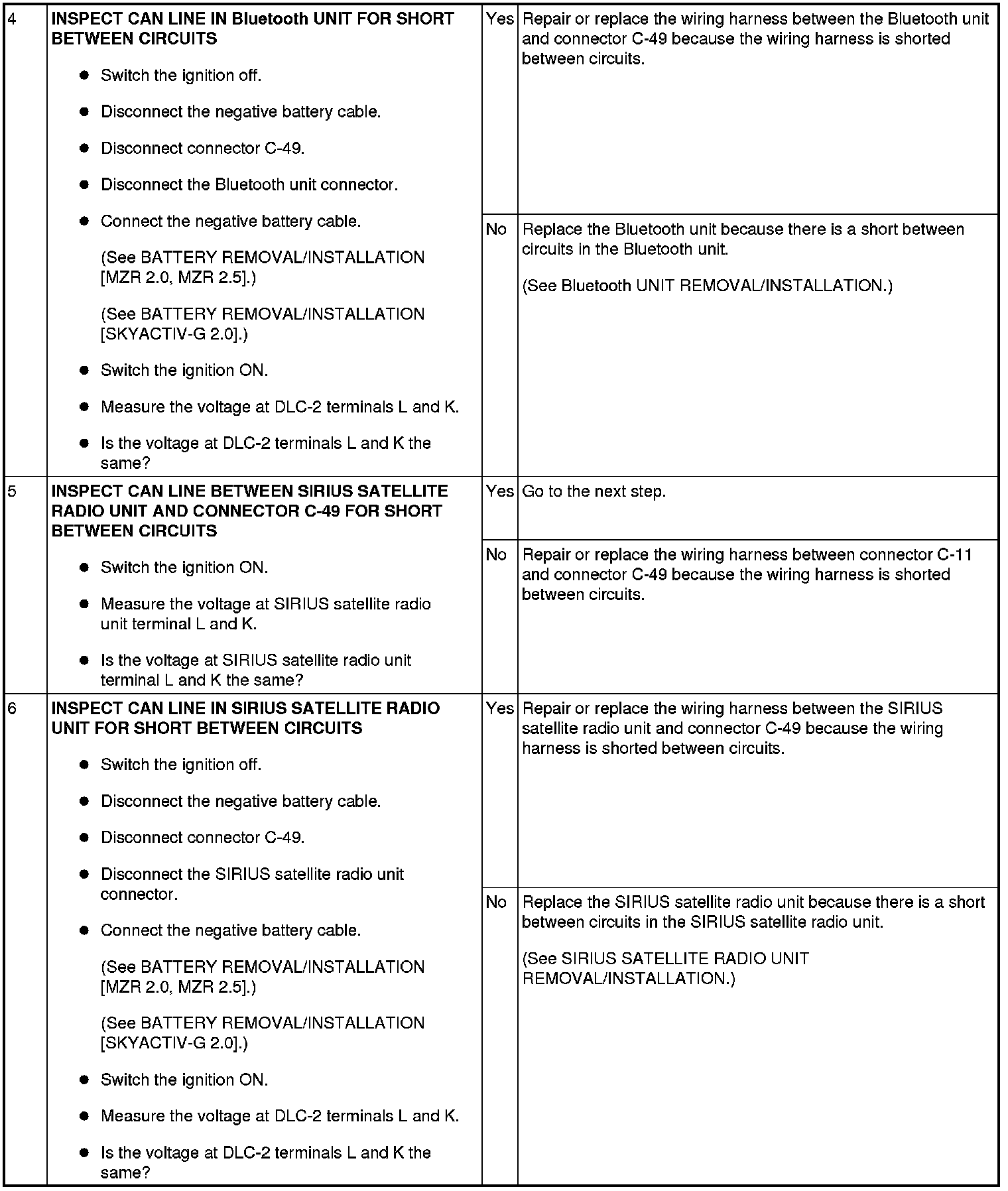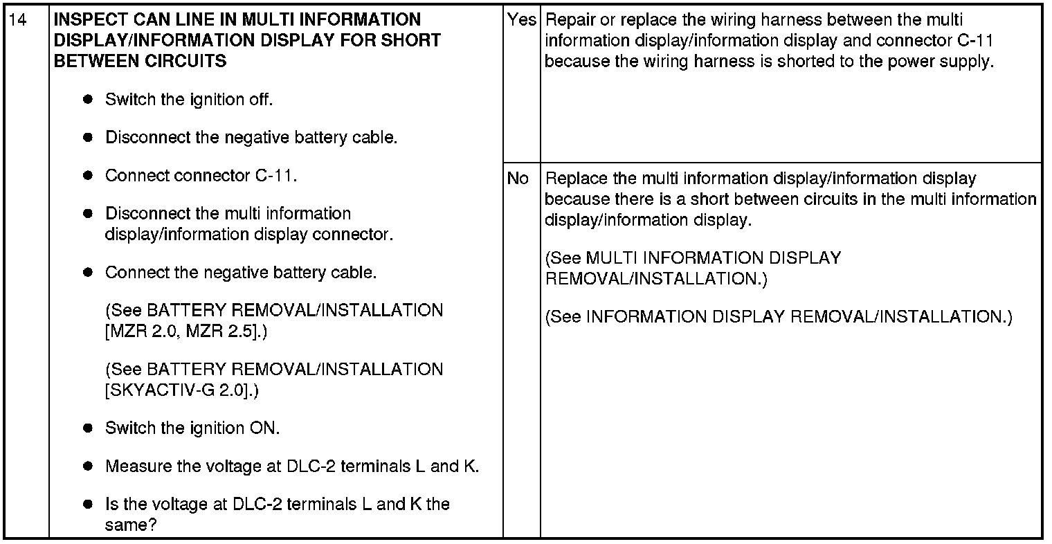 - Perform the following malfunction diagnosis only when it is diagnosed with a short between circuits by Controller Area Network (CAN) Malfunction Diagnosis Flow [Multiplex Communication System].