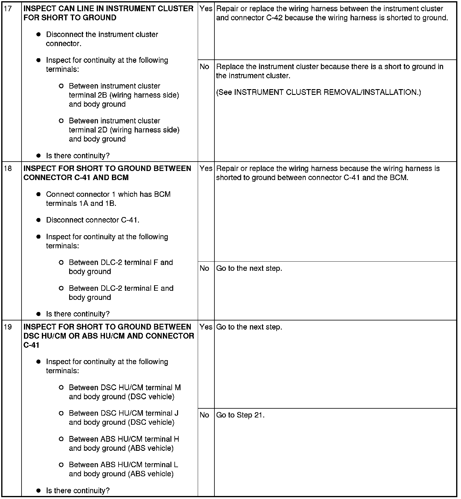 - Perform the following malfunction diagnosis only when it is diagnosed with a short to ground by Controller Area Network (CAN) Malfunction Diagnosis Flow [Multiplex Communication System].
