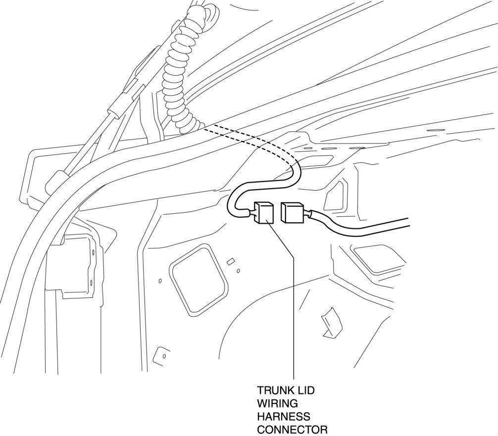 3. Disconnect the trunk lid wiring harness connector, then take the trunk lid wiring harness out from the vehicle.