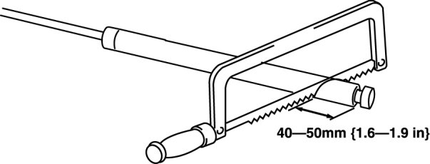 3. Drain gas and oil by cutting the position indicated in the figure to a 2-3 mm {0.08-0.11 in} depth using a metal saw.