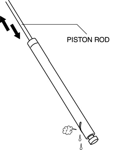 4. Verify that the gas and oil is drained completely by pulling and pushing the piston rod several times with the cut position facing downward.