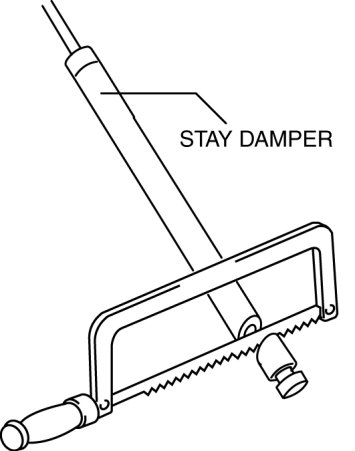 - When cutting the stay damper, wear protective eye wear to prevent the gas or oil from getting into your eyes. Otherwise, the force of the gas and oil spraying out could lead to injury.