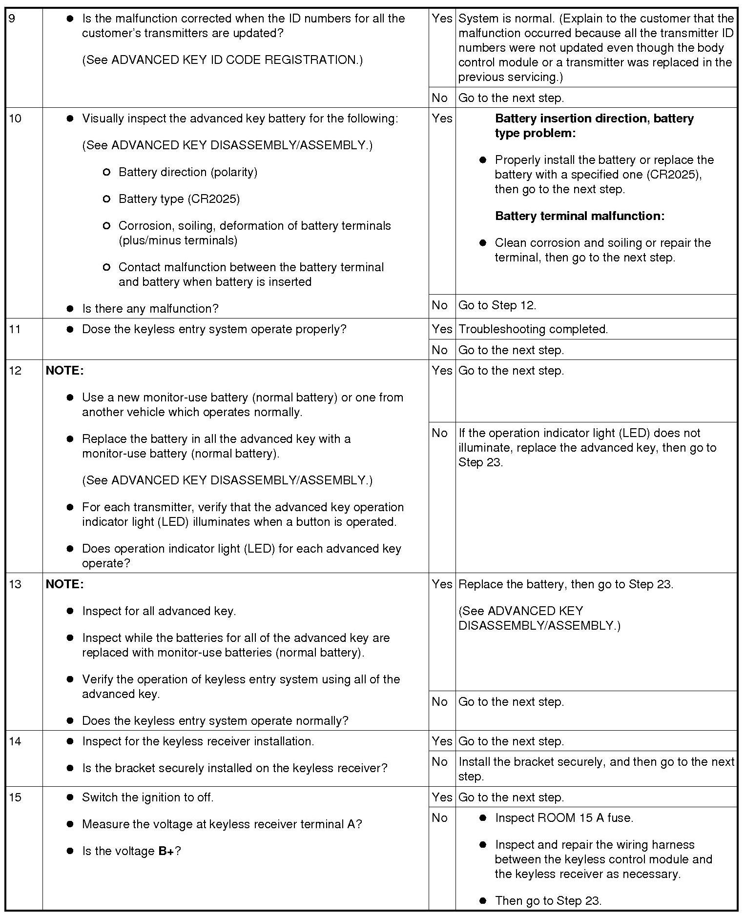 NO.1 DOOR CANNOT BE LOCKED/UNLOCKED BY ADVANCED KEY [ADVANCED KEYLESS ENTRY AND PUSH BUTTON START SYSTEM]