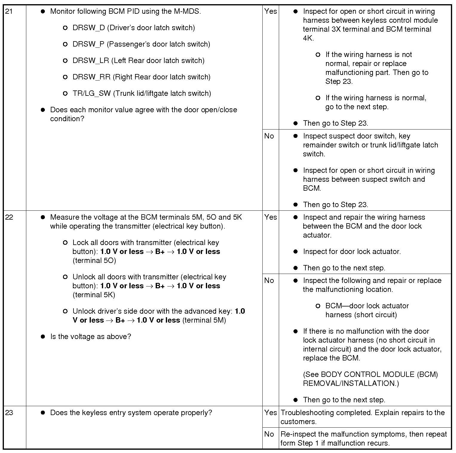 No. 1 Door Cannot Be Locked/Unlocked By Advanced Key