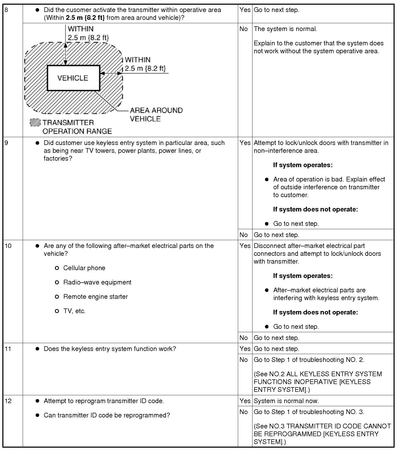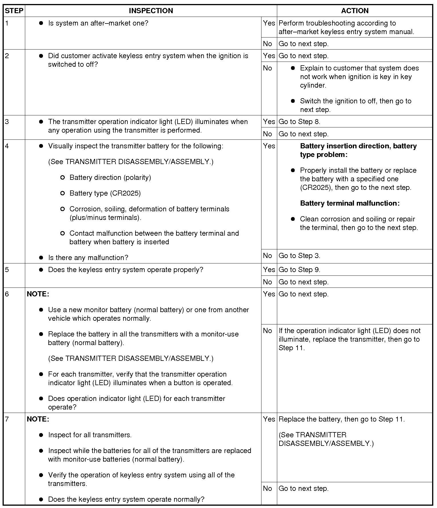 KEYLESS ENTRY SYSTEM PRELIMINARY INSPECTION [KEYLESS ENTRY SYSTEM]